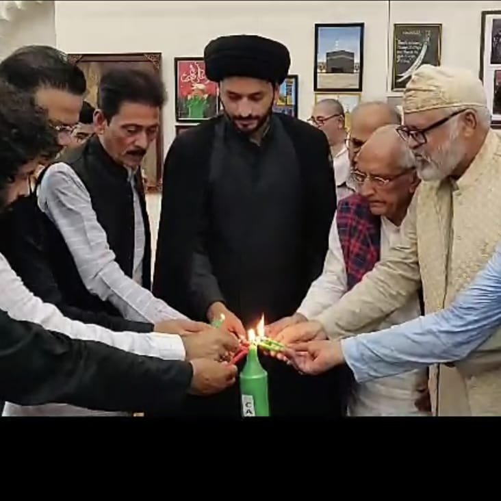 लखनऊ: आज वन वाइस संस्था द्वारा ‘15वी अन्तर्राष्ट्रीय मोहर्रम छायाचित्र, कैलीग्राफी एवं पेन्टिंग प्रद’ार्नी’ का उद्घाटन राज्य ललित कला अकादमी में किया गया। इस अवसर पर अतिथियों में श्री अतहर सगीर ज़ैदी (चेयरमैन फख़रुद्दीन अली अहमदत मेमोरीयल कमेटी, उवप्र0 सरकार), इरा हास्पिटल के वी.सी. अब्बास अली मेहदी, आबिद शमीम (अतिरिक्त न्यायाधीश सीतापुर), मौलाना आली, प्रो0 मन्ज़ूर अहमद पूर्व वी.सी आगरा विश्वविद्यालय, प्रो0 साबिरा हबीब, स्वामी सारंग, डा0 सरवत तक़ी, नवाब मसूद अब्दुल्लाह, सुनिता झिंगरन, सै0 नवेद अहमद, रुबिना मुर्ताज़ा, मौलाना खालिद, मेहराज हैदर, अनीस अन्सारी, असगर मेंहदी, रौशन तक़ी, अतहर नबी, डा0 असद अब्बास, डा0 मसीउद्दीन व मज़ाहिर रज़ा श्री उपस्थित थे।