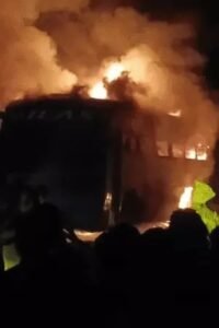 लखनऊ में धू-धूकर जली 41 सीटर बस