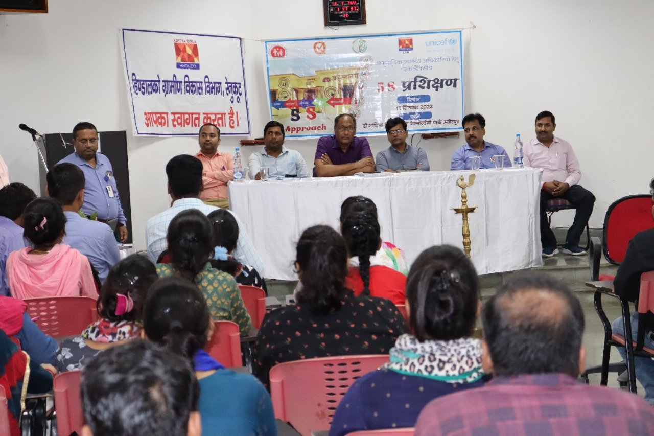 सोनभद्र/ रेनुकूटवॉश कायाकल्प कार्यक्रम के अंतर्गत प्रथम चरण में दुद्धी तहसील के चयनित 40 हेल्थ एण्ड वेलनेस सेंटर एवं एनक्युआस के चयनित 6 हेल्थ एण्ड वेलनेस सेंटर के सी.एच.ओ. का 5S एप्रोच के माध्यम से कायाकल्प कार्यक्रम के सफल क्रियान्वयन हेतु जिला प्रशासन,स्वास्थ्य विभाग,सी.एस. आर.- हिंडाल्को इंडस्ट्रीज एवं यूनिसेफ के संयुक्त तात्वाधान मे एक दिवसीय प्रशिक्षण कार्यक्रम का आयोजन आदित्य बिरला,रूरल टेक्नोलाजी पार्क, म्योरपुर मे किया गया, प्रशिक्षण कार्यक्रम का शुभारम्भ डा. आर.जी. यादव,अपर मुख्य चिकित्साधिकारी, सोनभद्र द्वारा दीप प्रज्ज्वलित कर किया गया ,