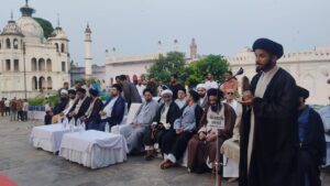 लखनऊ के छोटे इमामबाड़े में हुसैनाबाद ट्रस्ट के खिलाफ बड़ा जलसा।