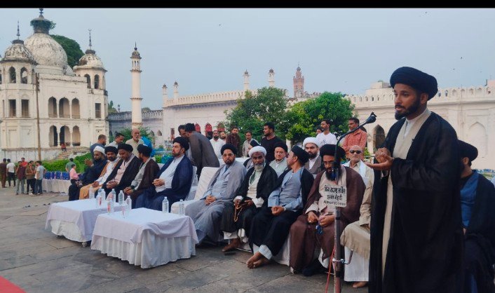 लखनऊ के छोटे इमामबाड़े में हुसैनाबाद ट्रस्ट के खिलाफ बड़ा जलसा।