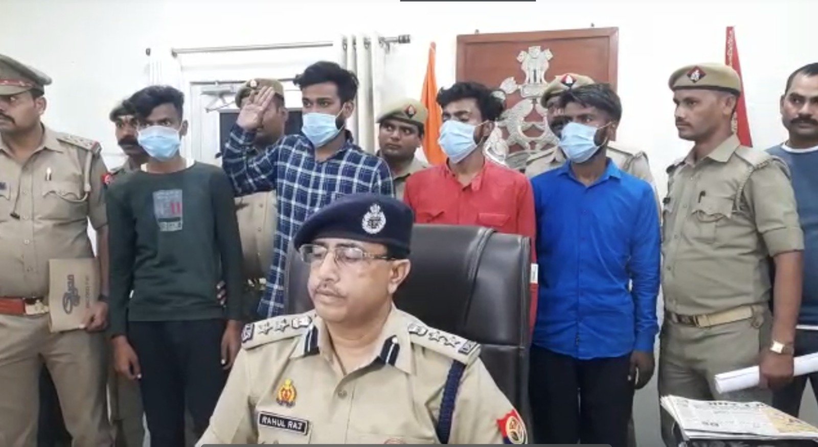 पुलिस ने सरगना आकाश यादव सहित विनय, देवेंद्र और हर्षित सहित चार लुटेरों को किया गिरफ्तार।