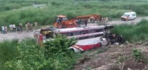 दिल्ली जा रही डबल डेकर बस अनियंत्रित होकर पलट गई। इस हादसे में दो यात्रियों की मौत हो गई। जबकि 50 से अधिक लोग घायल हो गए।