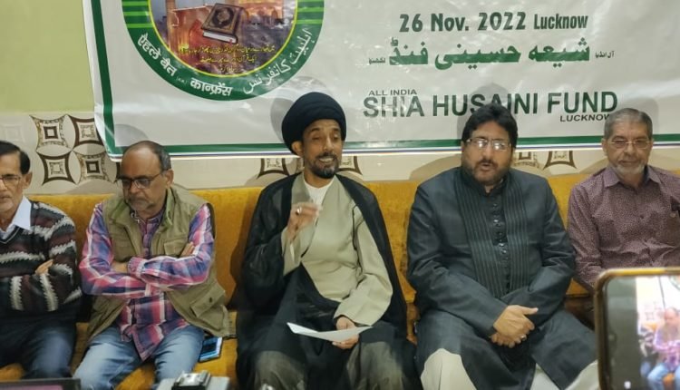 लखनऊ: शिया 24 नवंबर ऑल इंडिया शिया हुसैनी फंड द्वारा आज शिया डिग्री कॉलेज में एक प्रेसवार्ता का आयोजन किया गया।प्रेसवार्ता को धर्मगुरु मौलाना यासूब अब्बास मौलाना सैफ अब्बास मौलाना एजाज़ अतहर मौलना जाफ़र अब्बास और हुसैनी फंड के सचिव मेहदी हसन ने सयुंक्त रूप से संबोधित किया प्रेसवार्ता को संबोधित करते हुए शिया धर्मगुरुओं ने बताया की हुसैनी फंड द्वारा 26 नवंबर शनिवार को सुबह 10:30 बजे शिया कॉलेज नक्खास में अहले बैत कांफ्रेंस का आयोजन किया जायेगा इस कान्फ्रेंस का उद्देश्य सांप्रदायिक सौहार्द्र को बढ़ावा देना और आतंकवाद का विरोध करना आदि है धर्मगुरुओं के अनुसार पाकिस्तान अफ़ग़ानिस्तान इराक़ और सीरिया के बाद अब ईरान आतंकवादियों के निशाने पर है शिया धर्मगुरु मौलाना यासूब अब्बास ने कहा की पाकिस्तान आतंकवाद का केंद्र बन गया है जहाँ लगातार शिया समुदाय को सिपाहे साहबा और अल कायदा जैसे आतंकवादी संगठन निशाना बना रहे है मौलाना यासूब अब्बास ने क़तर की निंदा करते हुए कहा की फीफा वर्ल्ड कप 2022 में ज़ाकिर नायक को बुलाकर चरमपंथ को बढ़ावा दिया गया है. उन्होंने कहा ज़ाकिर नायक के व्याख्यान इस्लाम विरोधी होते हैं और आतंकवाद को बढ़ावा देते हैं