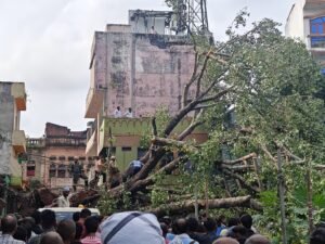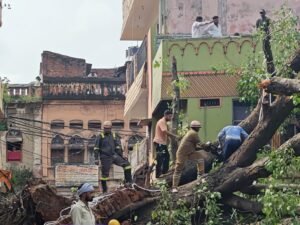 कैसरबाग मछली मंडी में पेड़ गिरने से क्षेत्र में मची सनसनी; मंडलायुक्त डॉ रोशन जैकब तत्काल पहुँची मौक़े पर।