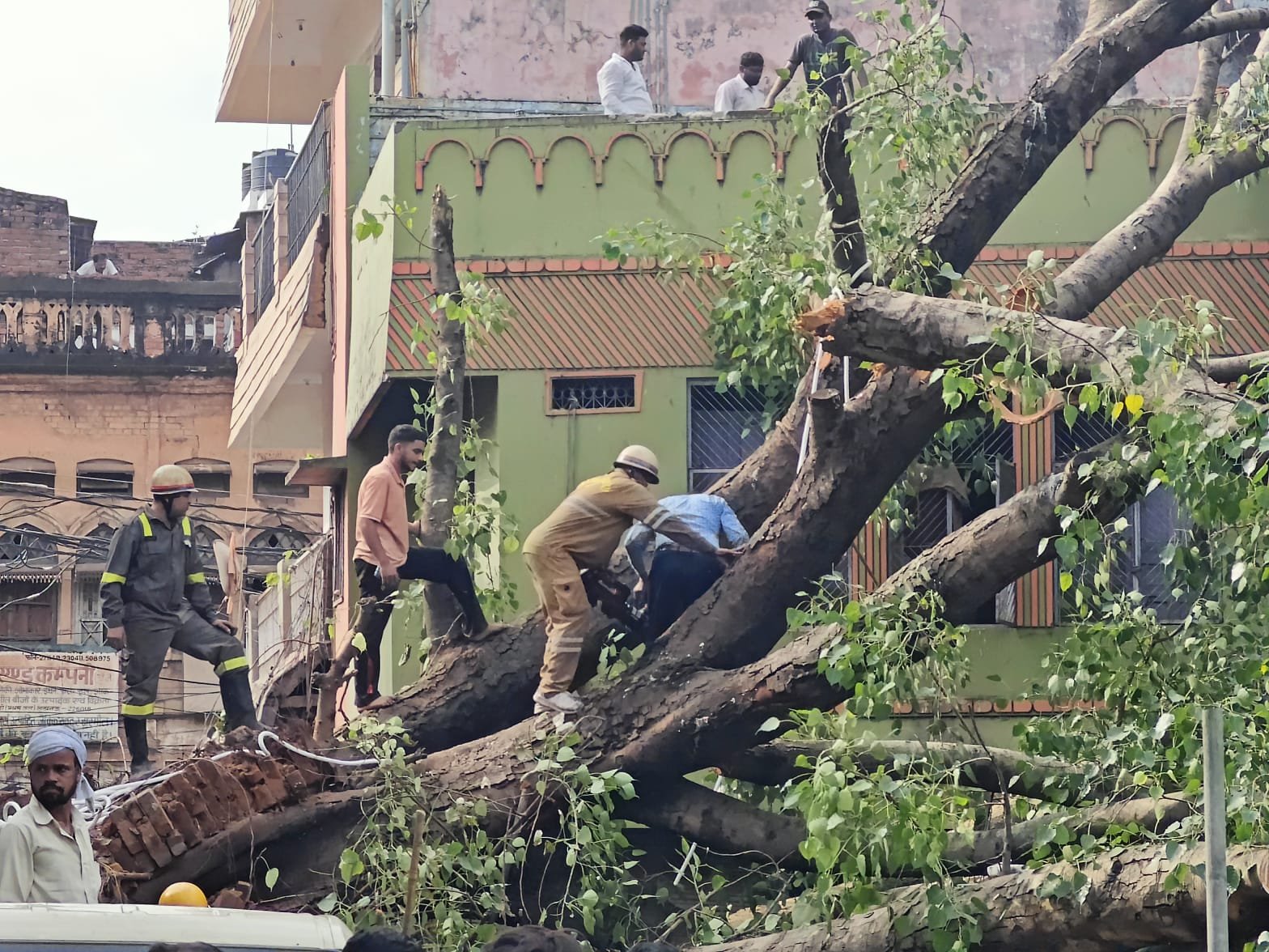 कैसरबाग मछली मंडी में पेड़ गिरने से क्षेत्र में मची सनसनी; मंडलायुक्त डॉ रोशन जैकब तत्काल पहुँची मौक़े पर।