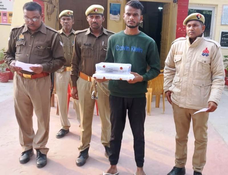 मऊ। बुधवार को थाना सरायलखंसी पुलिस द्वारा देखभाल क्षेत्र व चेकिंग के दौरान जरिये मुखबिर की सूचना पर इमिलियाडीह मोड़ बढुआ गोदाम के पास से अजीत कुमार पुत्र अजय कुमार निवासी निजामुद्दीनपुरा थाना कोतवाली जनपद मऊ के कब्जे से लूट/छिनैती का एक लैपटाप व एक अदद अवैध तमंचा व एक अदद जिंदा कारतूस 303 बोर बरामद कर गिरफ्तार किया गया। उल्लेखनीय है कि उक्त लैपटाप छिनैती की सूचना थाना स्थानीय पर वादी कीर्ति श्रीवास्तव द्वारा दी गयी जिसके अनुसार कचहरी मोड के पास एक बाइक सवार युवक रास्ता पूछने के बहाने उनका बैग ले कर भाग गया। इस सम्बन्ध में थाना स्थानीय पर मु0अ0सं0 465/22 धारा 392 भादवि0 का अभियोग पंजीकृत किया गया था। उक्त पूर्व में पंजीकृत अभियोग में धारा 411 की बढोत्तरी कर तथा बरामद अवैध तमंचा व जिंदा कारतूस के सम्बन्ध में धारा 3/7/25 आयुद्ध अधिनिमय का अभियोग पंजीकृत कर अभियुक्त का चालान न्यायालय किया गया।
