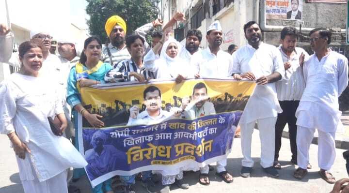 खाद संकट पर आम आदमी पार्टी का प्रदेशव्यापी प्रदर्शन, लखनऊ में जोरदार विरोध