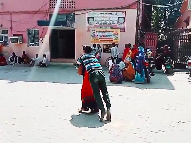 दिव्यांग पति को पीठ पर लादने के मामले में 3 पर कार्रवाई