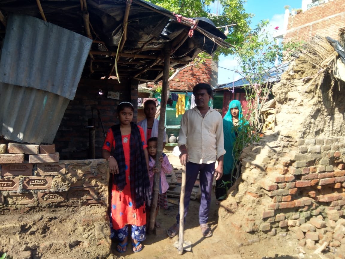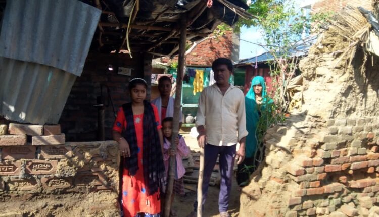 दो दिन हुई बरसात के बाद कच्चे मकान की दीवार गिरी गृहस्थी का सामान दबकर नष्ट हुआ।