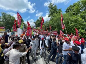 अखिलेश यादव ने कहा, भाजपा (BJP) के घोषणापत्र में 2022 तक किसानों की आय दोगुनी करने का वादा था। आज उत्तर प्रदेश का किसान जानना चाह रहा कि काले क़ानून के बाद, जिस तरह से मंड़ी बंद हो चुंकी हैं क्या उनकी आय दोगुनी हई आज भी किसानों के गन्ने का बकाया है।