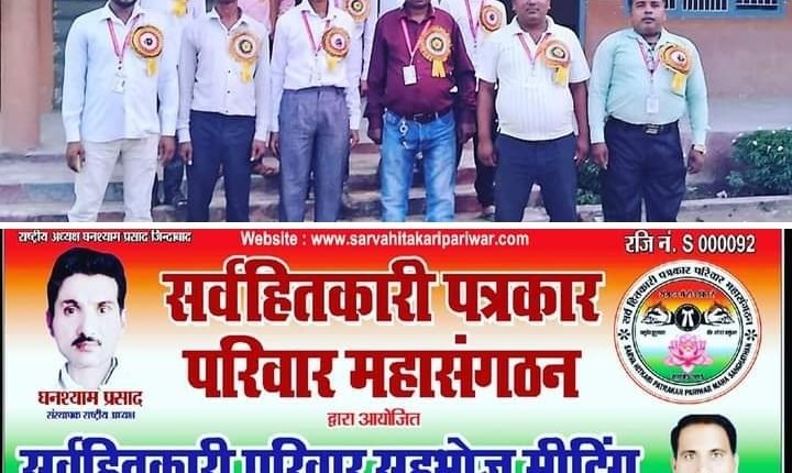 राष्ट्रीय अध्यक्ष घनश्याम प्रसाद ने सभी साथियों को गणेश गायत्री सरस्वती की पूजा अर्चना कर जहाँ देश समाज परिवार के लिए मंगल कामना की वहीं सभी साथियों को हाथ उठाकर समवेत भाव से शपथ संकल्प कराया कि हम सभी सर्वहितकारी पत्रकार परिवार महासंगठन के राष्ट्रीय बैनर के साथ हर दुखी पीड़ित जन की सेवा सुश्रुषा करेंगे समाज मे एक सुसंस्कारित आदर्श प्रस्तुत करेंगे एकता समता का भाव पैदा कर समाज को संगठित रखेंगे स्थानीय प्रशासन और शासन के मंशा अनुरूप सहयोग भी करेंगे ताकि कानून और न्याय का राज स्थापित हो सके। केन्द्र सरकार और सभी राज्य सरकारों के साथ जहाँ जरूरत पडेगी हम खुलकर संगठित समूह के साथ सहयोग भी करेंगे।