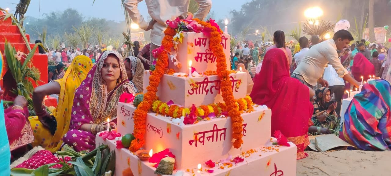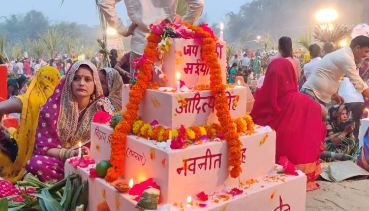 जगमग रोशनी के बीच छठव्रती महिलाओं ने दिया अस्ताचलगामी सूर्य को अर्घ्य