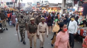 पश्चिम के अमीनाबाद थाना क्षेत्र में पुलिस का पैदल गश्त