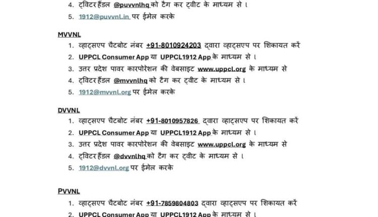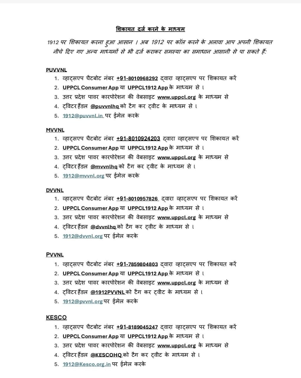 1912 नंबर के अलावा अन्य माध्यम से भी शिकायत कर सकेंगे लोग,व्हाट्सएप नंबर पर शिकायत कर सकेंगे उपभोक्ता UPPCL ऐप पर शिकायत कर सकेंगे उपभोक्ता,UPPCL की वेबसाइट भी रहेगी एक्टिव
