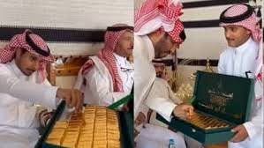 वीडियो में देखा जा सकता है कि शेखों के बीच सोने के बिस्किट बांटे जा रहे हैं, जिसे देखकर लोग चौंक गए हैं। इस अनोखे तरीके ने समारोह को और खास बना दिया है और इसे लेकर इंटरनेट पर तरह-तरह की प्रतिक्रियाएं सामने आ रही हैं।