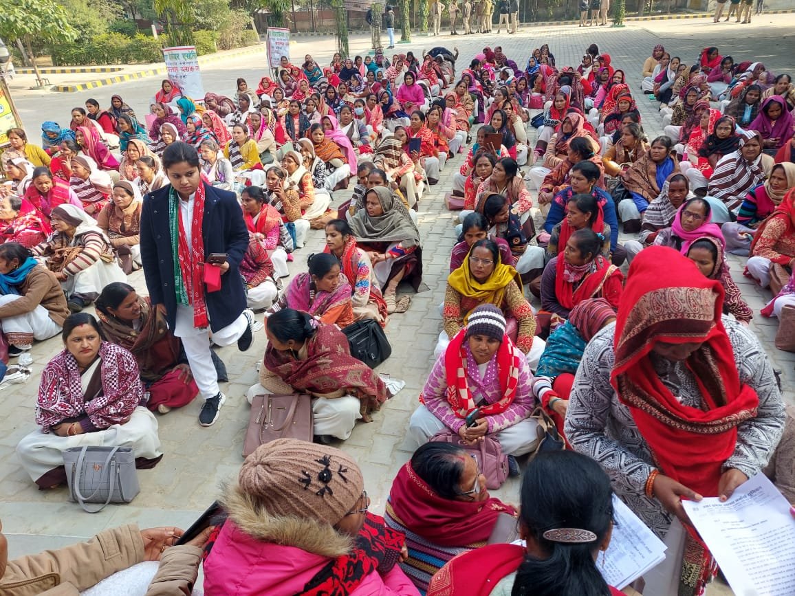 आशा बहुओं का हल्ला बोल पैदल मार्च निकाल पहुंची डीएम ऑफिस