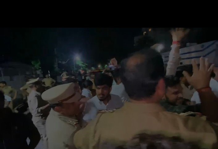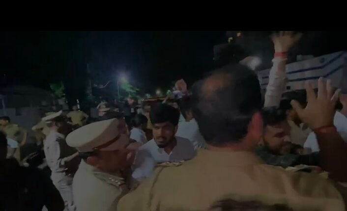 हजरतगंज इंस्पेक्टर विक्रम सिंह ने मौके पर पहुंचकर छात्रों को कराया शांत।