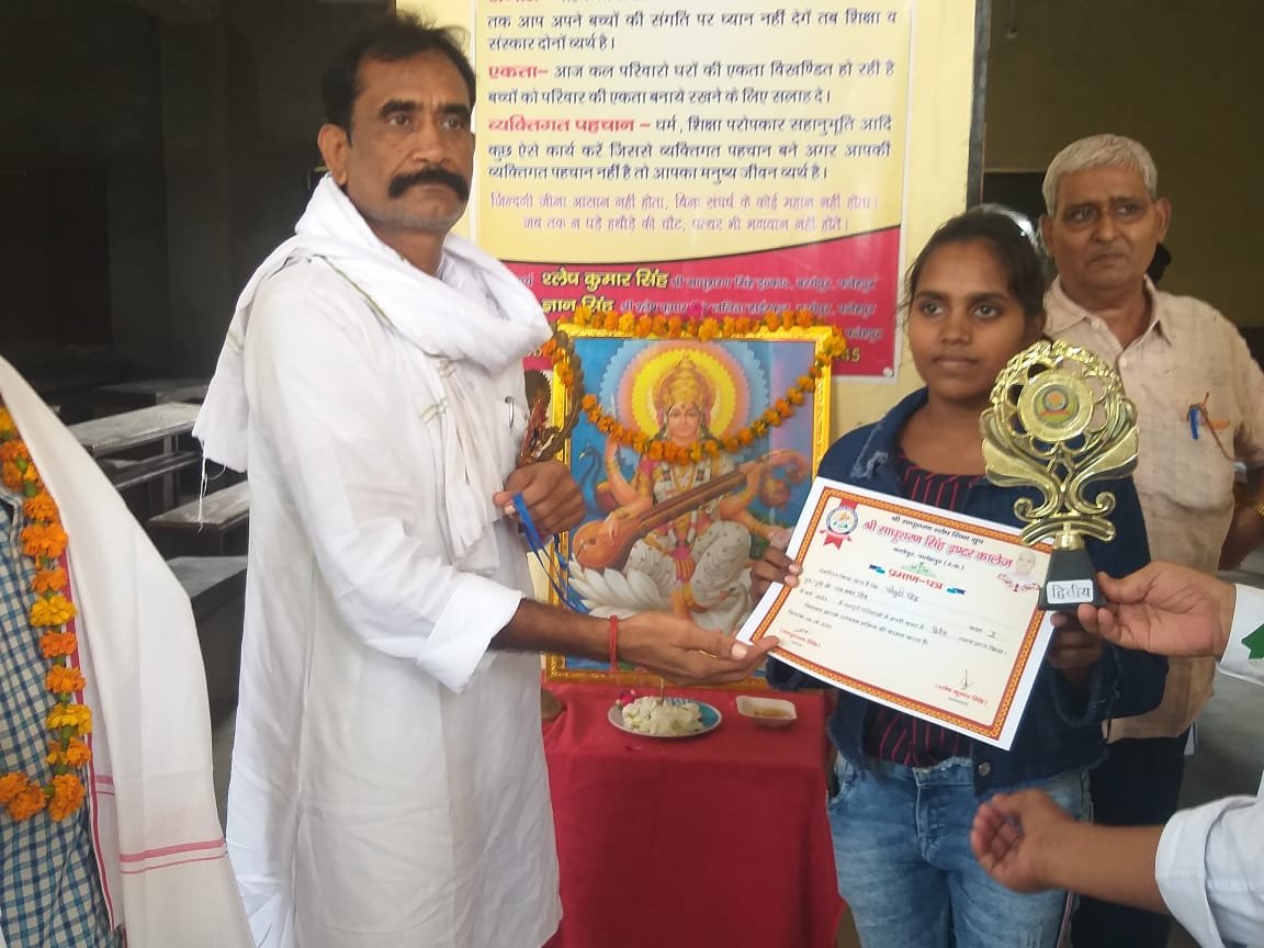 फतेहपुर : खागा तहसील के साधु शरण सिंह इण्टर कॉलेज बरैयपुर में बोर्ड परीक्षा में अच्छा प्रदर्शन करने वाले विद्यार्थियों को सम्मानित किया गया। विद्यालय में अतिथि के रूप में आये हुए ब्लॉक प्रमुख प्रतिनिधि राज नारायण सिंह व विशिष्ट अतिथि के रूप में राजेंद्र सिंह ग्राम पंचायत अधिकारी ने विद्यार्थियों को मेडल व सम्मान पत्र देकर बच्चों का उत्साहवर्धन किया। प्रमुख प्रतिनिधि ने विद्यार्थियों को लगातार शिक्षा के क्षेत्र में नया शिखते रहने के लिए प्रेरित किया। विद्यायल में कक्षा 10 में मोनिका, कौमुदी, सुमित, राज सिंह, अंशिका ने बाजी मारी। कक्षा 12 में अर्पित अग्रहरि, विनय सिंह, सुनीता देवी, अमर सिंह, प्रतिमा देवी सहित कई विद्यार्थी अव्वल रहे। विद्यालय के प्रबंधक साधु शरण सिंह ने कहा कि कोरोना की वजह से परीक्षा रद्द हो गई फिर भी विद्यालय के विद्यार्थियों ने बोर्ड में अच्छा प्रदर्शन किया। विद्यालय में आये हुए अतिथियों को अंगवस्त्र देकर सम्मानित किया गया। इस मौके पर दशरथ सिंह प्रधान घोषी, बब्बू सिंह पूर्व प्रधान सहित क्षेत्र के कई गणमान्य लोग उपस्थित रहे। विद्यालय स्टाफ की ओर से पंकज सिंह, अखिलेश सिंह, विजय शंकर, रविकरन आदि समस्त स्टाफ मौजूद रहे।