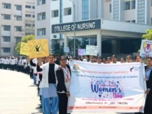लखनऊ : तीर्थंकर महावीर यूनिवर्सिटी, मुरादाबाद के तीर्थंकर महावीर कॉलेज ऑफ नर्सिंग की ओर से अंतर्राष्ट्रीय महिला दिवस पर पूरे कैंपस में जागरूकता रैली निकाली गई। नर्सिंग कॉलेज से डीन प्रो. एसपी सुभाषिनी ने हरी झंडी दिखाकर रैली को रवाना किया। रैली नर्सिंग कॉलेज से प्रारम्भ होकर इंडोर स्टेडियम, क्रिकेट ग्राउंड, मेडिकल कॉलेज, रिद्धि-सिद्धि भवन, प्रशासनिक भवन, पवेलियन होते हुए वापस नर्सिंग कॉलेज आकर समाप्त हुई