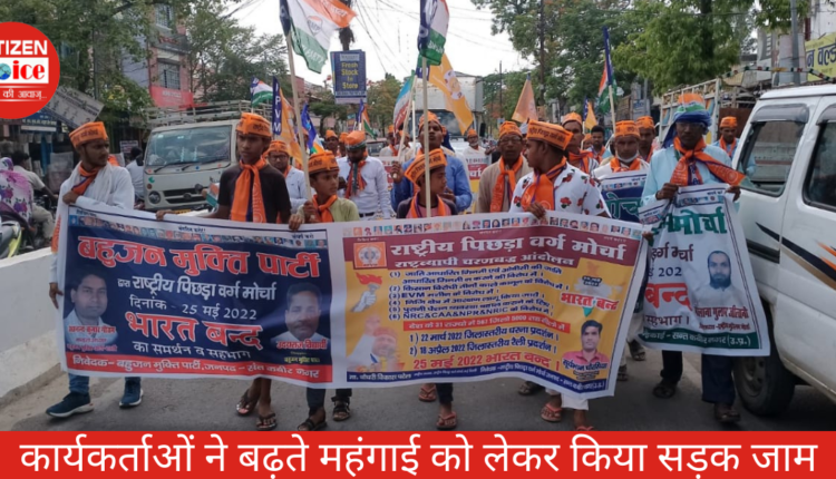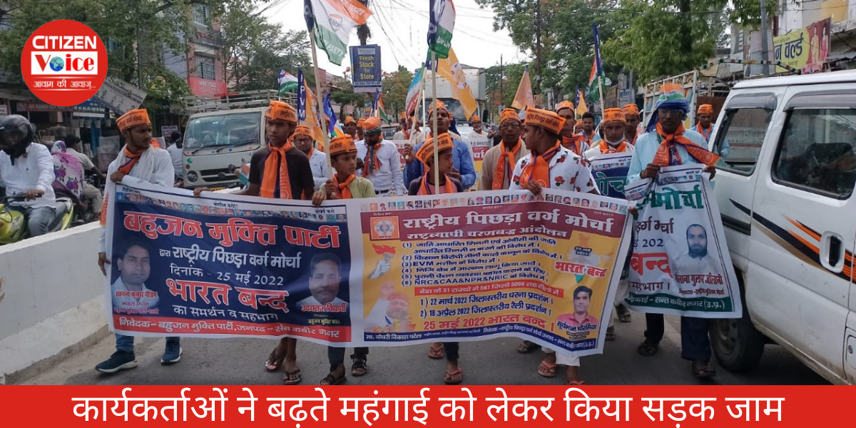 मेंहदावल : बांसी मार्ग पर स्थित निघुरी चौराहे पर बहुजन मुक्ति पार्टी के कार्यकर्ताओं ने सड़क जाम कर दिया तथा भारत बंद के समर्थन में सरकार विरोधी नारे लगाते हुए विरोध प्रदर्शन किया। बुधवार को पिछड़ा वर्ग मोर्चा के राष्ट्रीय अध्यक्ष चौधरी विकास पटेल के निर्देश पर कार्यकर्ताओं ने भारत बंद के समर्थन में सड़क जाम कर दिया। इस दौरान सरकार के खिलाफ जमकर नारेबाजी हुई इसके बाद जिलाध्यक्ष उदयराज विद्यार्थी ने कहा कि सरकार का मंहगाई पर कोई काबू नहीं है लगातार डीजल,पेट्रोल गैस सिलेंडर, खाद्य व अन्य सामग्री के दाम बढ़ रहे है भ्रष्टाचार की सीमा पार हो गई है लेकिन सरकार पर कोई लगाम नहीं है किसानों के साथ सौतेला व्यवहार हो रहा है