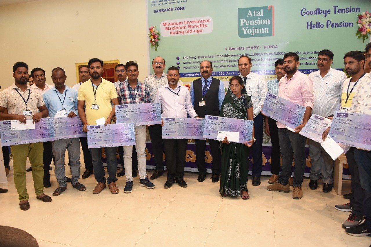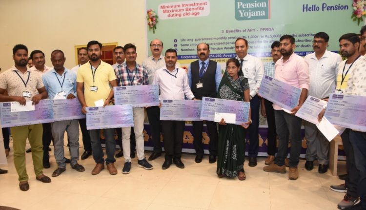 अटल पेंशन योजना में उत्कृष्ट कार्य के लिए सम्मानित हुए बैंक मित्र व शाखा प्रबन्धक