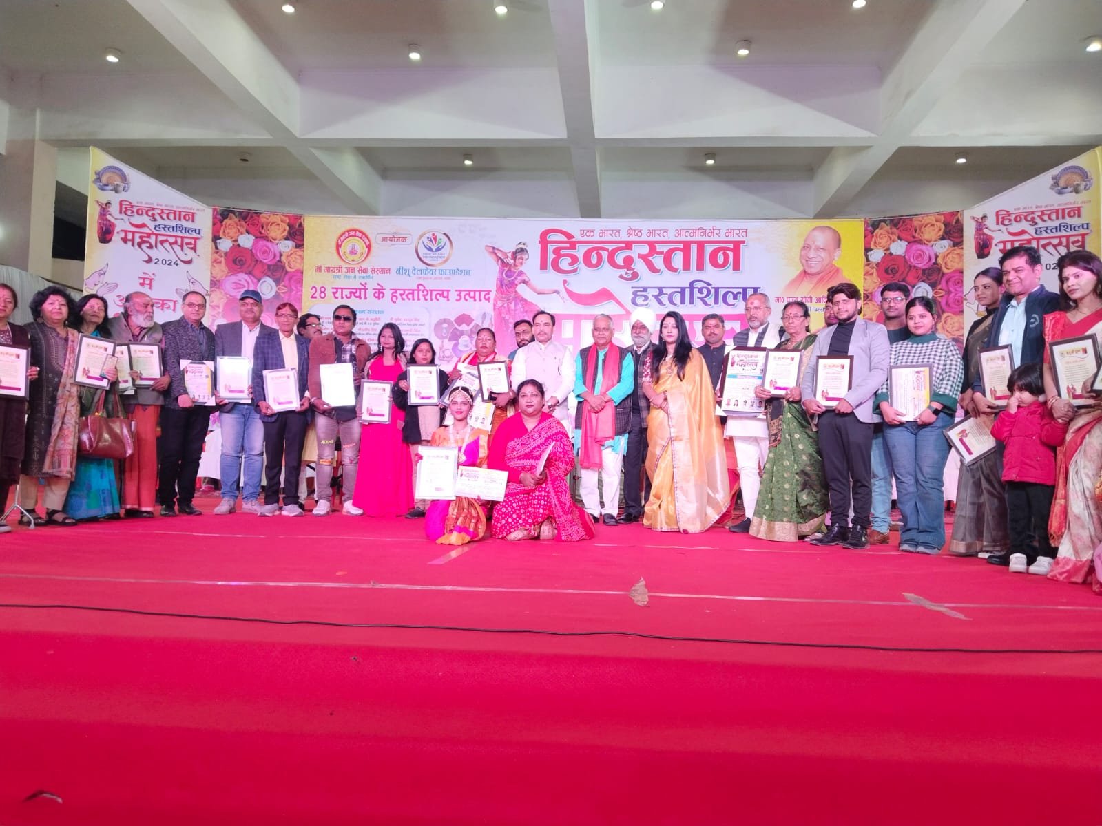 लखनऊ कानपुर रोड आशियाना क्षेत्र में स्थित स्मृति उपवन में माँ गायत्री जन सेवा संस्थान एवं नीशू वेलफेयर फाउंडेशन द्वारा आयोजित हिंदुस्तान हस्तशिल्प महोत्सव में बतौर मुख्य अतिथि माननीय राज्यमंत्री उत्तर प्रदेश सरकार विश्वनाथ  विशिष्ट अतिथि नीलांश ग्रुप डायरेक्टर संतोष श्रीवास्तव एवम को चेयरमैन बार काउंसिल आफ उत्तर प्रदेश एवं पूर्व अध्यक्ष लखनऊ बार एसोसिएशन गोविंद नारायण शुक्ला व पूर्व अध्यक्ष सेंट्रल बार काउंसिल आदेश सिंह और भाजपा नेता पूर्व मेयर प्रत्याशी लखनऊ अजय त्रिपाठी मुन्ना महोत्सव अध्यक्ष अरुण प्रताप सिंह व गुंजन वर्मा ने दीप प्रज्वलित कर सांस्कृतिक संध्या का शुभारंभ किया। सांस्कृतिक संध्या में कलाकारों ने नृत्य,गीत, संगीत की प्रस्तुती दी