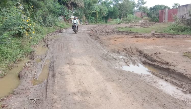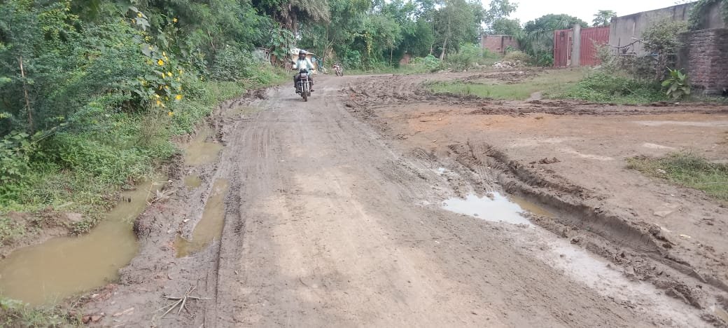 राइस मिल के भारी वाहनों से क्षतिग्रस्त हो गई बिठगांव की सड़क