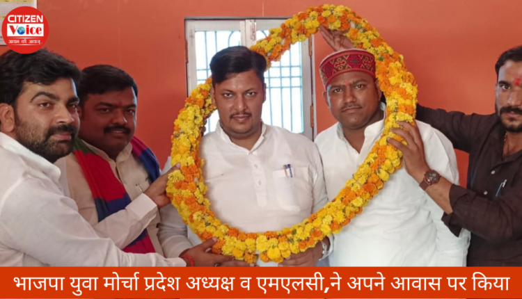 सोनभद्र : भाजपा युवा मोर्चा के प्रदेश अध्यक्ष, नवनिर्वाचित निर्विरोध एमएलसी प्रांशु दत्त द्विवेदी का भाजपा युवा मोर्चा के क्षेत्रीय मीडिया प्रभारी विपिन तिवारी के आवास पर पुष्पों की माला पहनाकर वअंग वस्त्र देकर भव्य स्वागत किया गया, प्रदेश अध्यक्ष प्रांशु दत्त द्विवेदी का कार्यक्रम सोनभद्र में दो दिवसीय प्रवास पर था, विकास तीर्थ बाइक रैली कार्यक्रम के पश्चात प्रांशु द्विवेदी जी का आगमन काशी क्षेत्र के मीडिया प्रभारी विपिन तिवारी आवास पर हुआ