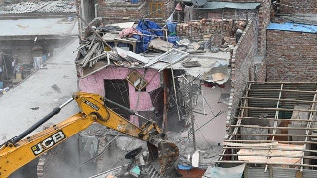 दिल्ली के तैमूर नगर में बुलडोजर एक्शन।