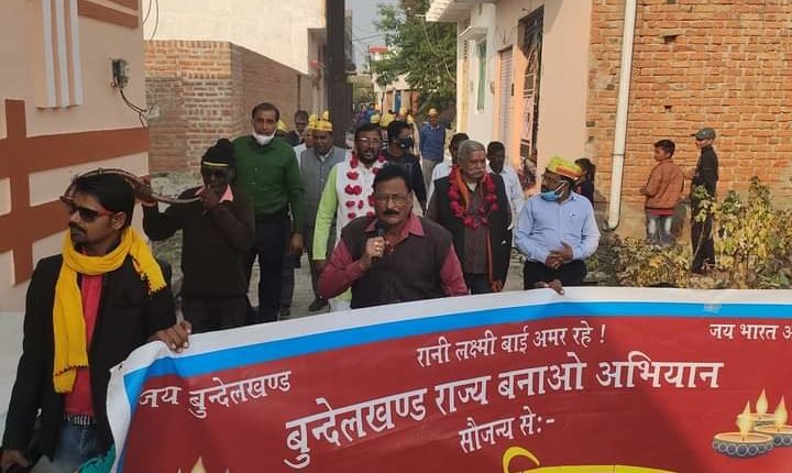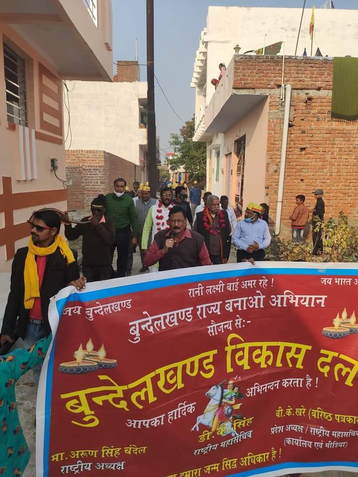 झांसी : बुंदेलखंड विकास दल द्वारा बुंदेलखंड राज्य निर्माण अभियान के तहत जनसभा एवं रैली का आयोजन कृष्णा नगर कॉलोनी नगरा झाँसी के हरदौल मंदिर प्रांगण मे पार्टी के राष्ट्रीय महासचिव बी के खरे के मुख्य आतिथ्य एवं राष्ट्रीय उपाध्यक्ष अभिनयेन्द्र सिंह भदौरिया की अध्यक्षता में किया गया। सभा में पार्टी के पदाधिकारियों एवं कार्यकर्त्ताओं के अतिरिक्त क्षेत्रीय जनता के बीच बुजुर्गो एवं महिलाओं ने भी बड़ी संख्या में पृथक बुंदेलखंड राज्य बनाओ अभियान मे अपनी भागेदारी निभाई l