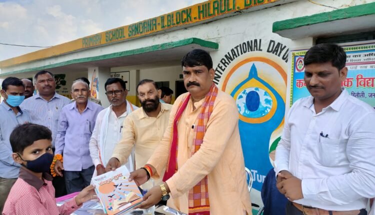 पुरवा-उन्नाव : हिलौली ब्लॉक अंतर्गत संदाना स्थित कन्या प्राथमिक विद्यालय में बुधवार को निःशुल्क पुस्तक वितरण समारोह का आयोजन किया गया।जिसमें मुख्य अतिथि के रूप में पहुंचे हिलौली ब्लाक प्रमुख ने मां सरस्वती के चित्र में दीप प्रज्ज्वलित कर कार्यक्रम की शुरूवात की।इस दौरान बच्चो ने सांस्कृतिक कार्यक्रम मंचन कर सभी का मन मोह लिया।