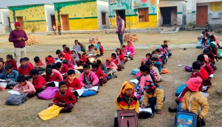 कड़ाके की ठंड में बिना स्वेटर विद्यालय जा रहे बच्चे