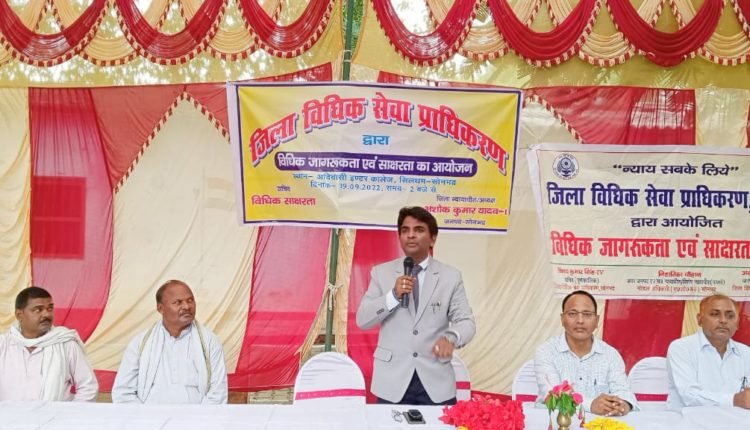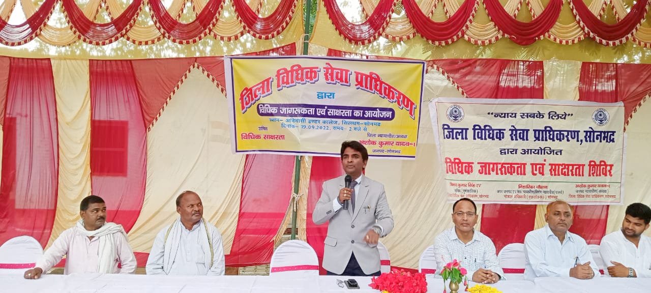 सोनभद्र/ब्यूरो उत्तर प्रदेश राज्य विधिक सेवा प्राधिकरण लखनऊ के तत्वाधान में मा.जनपद न्यायाधीश/अध्यक्ष  अशोक कुमार यादव प्रथम जिला विधिक सेवा प्राधिकरण के निर्देशन पर आज सोनभद्र जिले के चतरा ब्लॉक के आदिवासी इंटर मीडिएट कॉलेज सिल्थम में सचिव जिला विधिक सेवा प्राधिकरण श्री विनय कुमार सिंह के द्वारा आदिवासी अंचलो से आये बच्चो को विधिक साक्षरता शिविर लगाकर इंटरनेट/मोबाइल के दुष्प्रभाव के साथ उनके विधिक अधिकारों के बारे में बताकर जागरूक किया गया।
