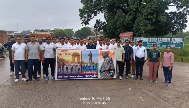 चोपन पुलिस के अधिकारियों-कर्मचारियों ने दौड़ कर दी एकता का संदेश।