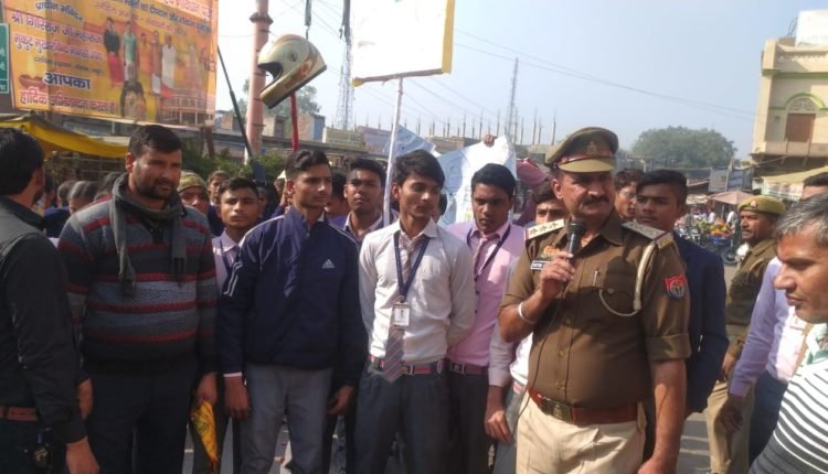 छात्र छात्राओं को सीओ गोवर्धन ने बताए ट्रैफिक के नियम