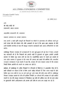 प्रियंका ने शनिवार को पत्रकारों से बातचीत के दौरान पीएम मोदी को संबोधित पत्र को साझा करते हुए कहा, ‘लखीमपुर किसान नरसंहार में अन्नदाताओं के साथ हुई क्रूरता को पूरे देश ने देखा। आपको यह जानकारी भी है कि किसानो को अपनी गाड़ी से कुचलने का मुख्य आरोपी आपकी सरकार के केन्द्रीय गृह राज्यमंत्री का बेटा है।