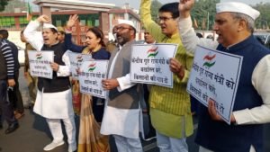 लखनऊ : उत्तर प्रदेश विधानसभा के शीतकालीन सत्र की शुरुआत के पहले आज सुबह कांग्रेस विधायकों ने गृहराज्यमंत्री अजय मिश्र टेनी की बरख़ास्तगी की मांग को लेकर मार्च निकाला। जीपीओ स्थित महात्मा गांधी की प्रतिमा से विधानसभा तक निकले कांग्रेस विधानमंडल दल के मार्च का नेतृत्व कर रहे पार्टी प्रदेश अध्यक्ष अजय कुमार लल्लू ने कहा कि एसआईटी की रिपोर्ट ने साफ़ कर दिया है कि लखीमपुर किसान नरसंहार एक बड़ी साज़िश का नतीजा है। किसानों का शक़ अब और बढ़ गया है कि इस नरसंहार को आशीष मिश्र ने अपने पिता अजय मिश्र टेनी के इशारे पर अंजाम दिया है। गृहराज्यमंत्री टेनी की बरखास्तगी तक कांग्रेस चुप नहीं बैठेगी।