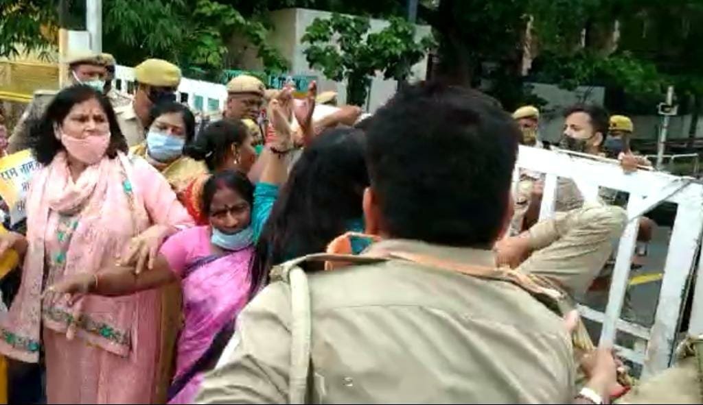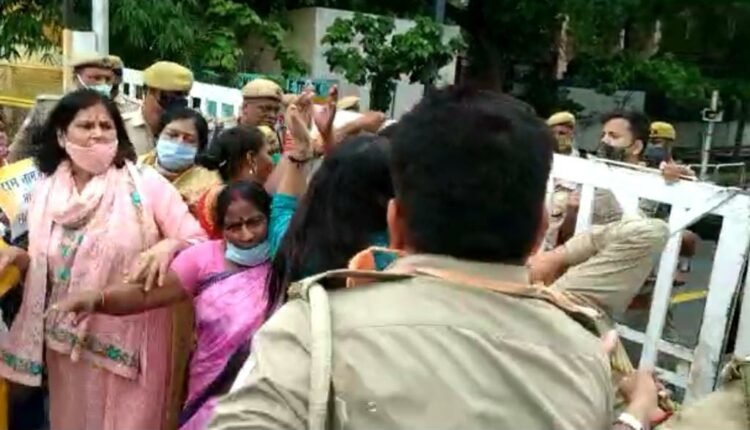 CM आवास पर कांग्रेस महिला विंग की नेताओं ने राम मंदिर ट्रस्ट की जमीन में हुए घोटाले को लेकर किया प्रदर्शन