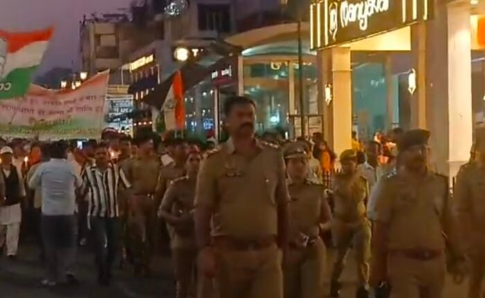 पहलगाम में आतंकी हमले के विरोध में कांग्रेसियों ने कैंडल मार्च निकाला