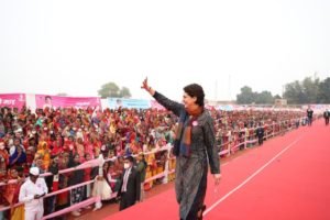 प्रियंका गांधी वाड्रा ने कहा कि महिलाओं को हम पर भरोसा करना पड़ेगा यह महिलाओं का हक़ है कि सरकार उनके लिए रोजगार सुनिश्चित करने के लिए काम करे। खेलों में महिलाओं में बहुत क्षमता है, उन्हें सारी सुविधाएं मिलें तो वह बहुत अच्छा कर सकती हैं। हम एक पूरा विधान निकालने वाले हैं, जिसमें भर्तियां निकालने, रोजगार देने का अपना रोडमैप बताएँगे। उत्तर प्रदेश में काफी वेकेंसियां हैं जो भरी नहीं गई हैं विधानसभा चुनाव में चालीस फीसद महिलाओं को टिकट देना हमारी बड़ी पहल है। जबसे हमने लड़कियों का मुद्दा उठाया तब से दूसरी पार्टियां भी जाग गई हैं कि आधी आबादी महिलाएं हैं। अचानक अब मोदी जी ने पहली बार सिर्फ महिलाओं की रैली की, अखिलेश जी ने महिलाओं के लिए घोषणाएं की। यह क्यों हो रहा है? क्योंकि लोग समझने लगे हैं कि महिलाओं की एक बहुत बड़ी शक्ति है, जिसको नकारा नहीं जा सकता है। अगर हम उत्तर प्रदेश में क्रांति लाएंगे, तो मैं दावा कर सकती हूँ कि संसद भवन में भी लोग इसे नकार नहीं पाएंगे। हमारी पार्टी ने घोषणा की है कि आंगनबाड़ी कार्यकत्रियों को दस हजार रुपये प्रतिमाह मानदेय मिलेगा, साथ ही प्रोत्साहन राशि भी दी जाएगी।