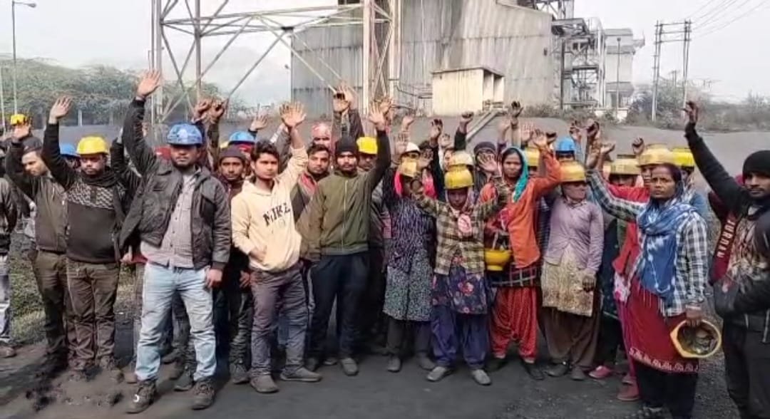 एनसीएल खडिया CHP मे कार्यरत STAR,O&M मे कार्यरत मजदूर की गिरने से मौत, भुगतान व सुरक्षा मानको के लिए मजदूरों ने किया प्रदर्शन