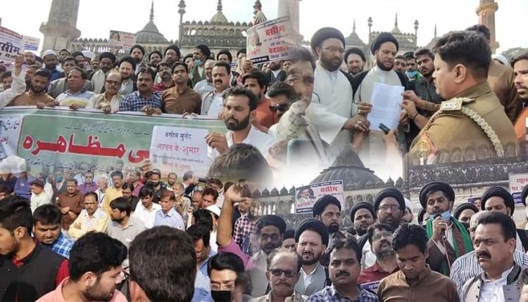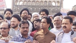 लखनऊ : कुराने मजीद और पैगम्बर-ए-इस्लाम (स.अ.व.स) की अहानत के मुजरिम मुरतद वसीम रुश्दी के खिलाफ आसिफी मस्जिद में नमाजे जुमा के बाद विरोध प्रदर्शन किया गया जिसमे उलेमा, खुतबा, शोअरा और बड़ी तादाद में मोमनीन शरीक कीे मौलाना कल्बे जवाद नकवी ने तमाम इदारों, तंजीमों, उलेमा, खुतबा, शोअरा और मोमनीन ने शिरकत की। प्रदर्शन में उलेमा ने कहा कि यह दुर्भाग्यपूर्ण एवं निंदनीय है कि वसीम रिजवी अपने राजनीतिक लाभ और सस्ती प्रसिद्धि के लिए इस्लाम और पवित्र हस्तियों के खिलाफ जहर उगल रहा है।