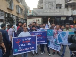 प्रदर्शन में पाकिस्तान की हुकूमत होश में आओ के नारे लगाए गए नौजवानों ने बैनर पोस्टर पर स्टॉप शिया किलिंग को लेकर अपनी आवाज को बुलंद किया हुसैनी टाइगर्स के अध्यक्ष नासिर हुसैन ने प्रदर्शन के दौरान अपने बयान में कहा कि पाकिस्तान में कई सालों से शिया टारगेट किलिंग चल रही है हजारों लाखों शियों की जाने आतंकवादी अब तक ले चुके हैं और पाकिस्तान सरकार सिर्फ तमाशबीन बनी रहती है।हमलावरों के खिलाफ कोई भी कार्रवाई नहीं की जाती है। और ना ही हुकूमत इसके लिए कोई सख्त पहल करती है