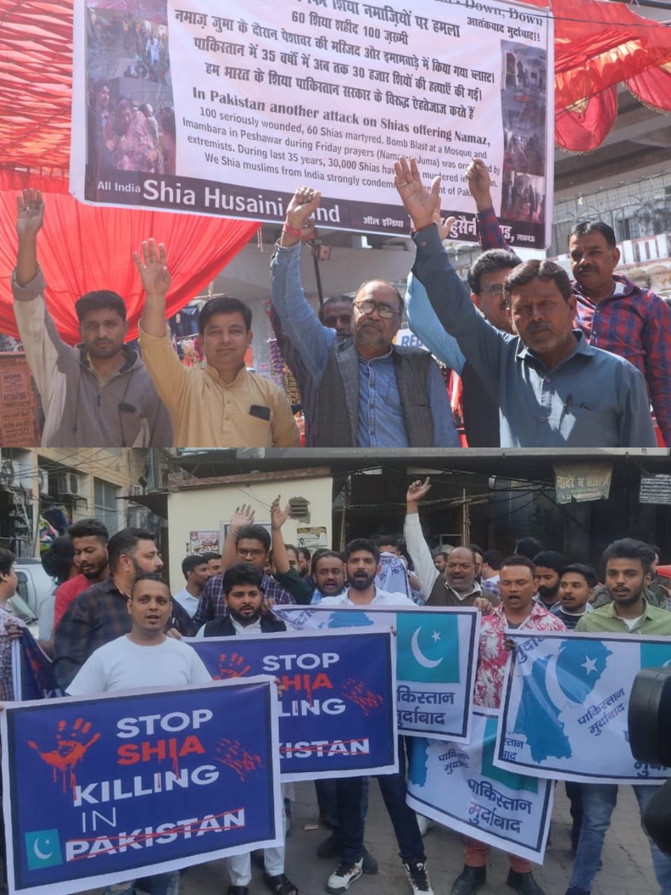 आल इंडिया शिया हुसैनी फंड और हुसैनी टाइगर्स द्वारा पाकिस्तान में शियों की हत्या के विरोध में प्रदर्शन।