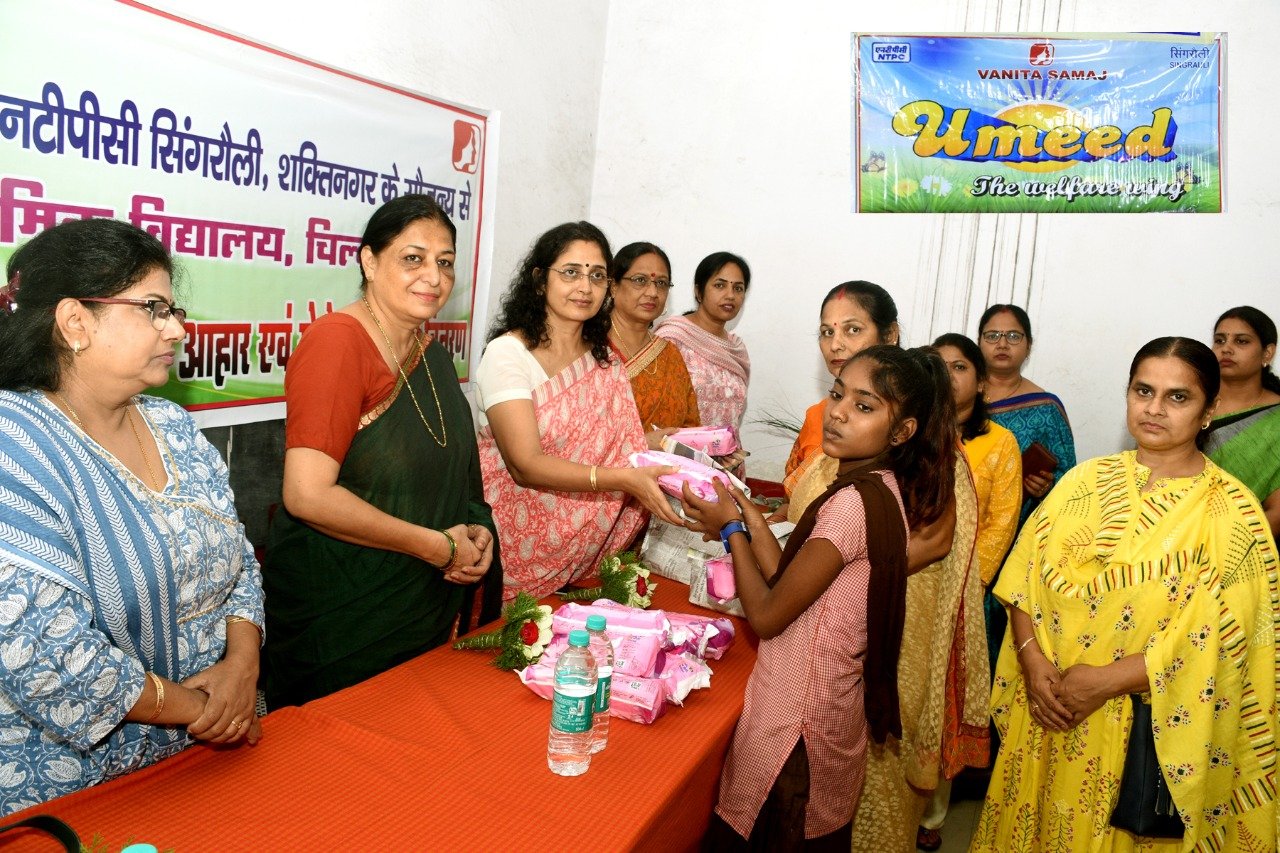 सोनभद्र/शक्तिनगर वनिता समाज,एनटीपीसी सिंगरौली शक्तिनगर द्वारा भारत सरकार की ‘पोषण अभियान योजना को बढ़ावा देने के उद्देश्यसे  जयिता गोस्वामी,अध्यक्षा, वनिता समाज एवं वनिता समाज की वरिष्ठ सदस्याओं द्वारा उच्च प्राथमिक विद्यालय, चिल्काडाँड की कक्षा-6 सेकक्षा-8 तक की सभी छात्राओं को पौष्टिकआहार वितरित किए गए। इसी क्रम में कक्षा-6 से कक्षा-8 की सभी छात्राओं में स्वास्थ्य और स्वच्छता को बढ़ावा देने हेतु स्वास्थ्य किट के तहतसैनिटरी पैड भी वितरित किए गए।