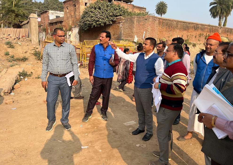 अयोध्या: रामनगरी अयोध्या को भव्य, नव्य और दिव्य बनाने के दृष्टिगत मण्डलायुक्त गौरव दयाल ने  विभिन्न निर्माणाधीन परियोजनाओं राम जन्मभूमि पथ सुग्रीव किला से रामजन्म भूमि तक व भक्ति पथ श्रृंगार हाट से हनुमानगढ़ी होते हुये राम जन्म भूमि पथ तक के निर्माण कार्य की प्रगति का निरीक्षण किया।  उन्होंने जन्मभूमि पथ का निरीक्षण करते हुये कहा कि पथ को यथासम्भव पौराणिक रूप के अनुरूप बनाया जाये। पथ के किनारे जो दीवारें है उनका भी सौन्दर्यीकरण किया जाये। पथ के किनारे से जो सीवेज लाइन है वह टेढ़ी-मेढ़ी न हो। उनकी फाइनल फिनिशिंग एक सीध में सूत डालकर की जाये।