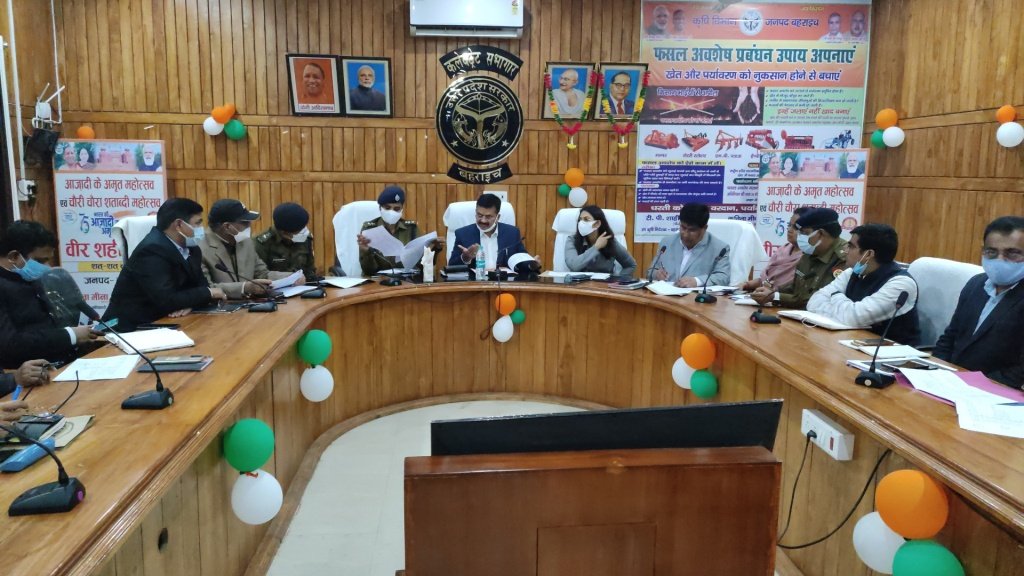 बहराइच : आसन्न विधानसभा सामान्य निर्वाचन-2022 को स्वतन्त्र, निष्पक्ष एवं शान्तिपूर्ण ढंग से सम्पन्न कराये जाने के लिए जिलाधिकारी डॉ. दिनेश चन्द्र ने शुक्रवार को देर शाम कलेक्ट्रेट सभागार में निर्वाचन की विभिन्न व्यवस्थाओं के लिए तैनात किये गये प्रभारी व सहायक प्रभारी अधिकारियों के साथ आयोजित बैठक में निर्देश दिया कि निर्वाचन जैसे अतिमहत्वपूर्ण कार्य को भारत निर्वाचन आयोग की मंशानुरूप सम्पन्न कराये जाने को एक चुनौती के रूप में स्वीकार करें तथा यह सुनिश्चित करें कि सभी कार्य समयबद्धता के साथ अन्जाम दिये जायें।