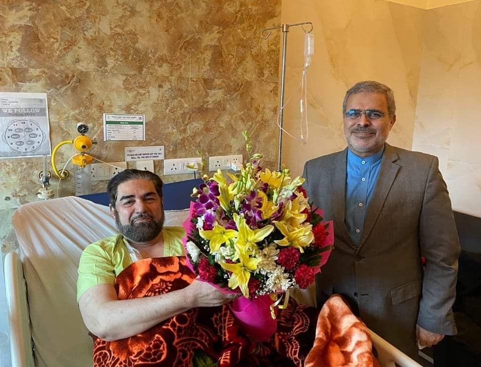 लखनऊ: भारत में ईरान के राजदूत डॉ अली चागिनी ने मौलाना सैय्यद कल्बे जवाद नक़वी की दिल्ली के अस्पताल में जाकर अयादत की।