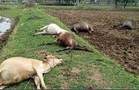 जिसके चलते आज एक बड़ी घटना सामने आई है और नौ अन्य मवेशी झूलते और जमीन को छूते हुए हाईटेंशन तार की चपेट में आ गए जिससे नौ मवेशियों की मौके पर ही मौत हो गई।